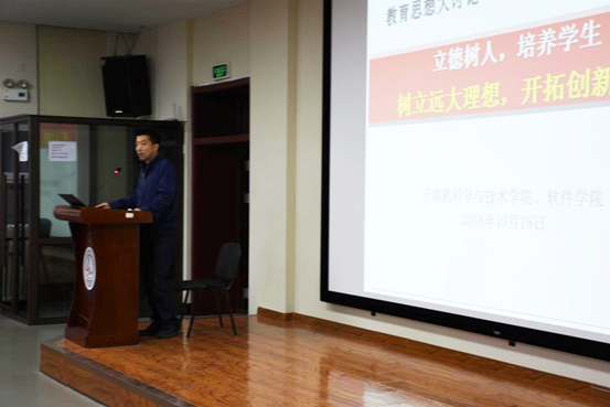 为进一步提升计算机科学与技术学院、软件学院创新人才培养水平,推进学院教学工作深入开展,2018年10月18日上午,两院于计算机楼b108组织召开了“立德树人,培养学生”的专题教育思想大讨论,计算机科学与技术学院党委副书记杜天宝、软件学院副院长郭东伟、计算机科学与技术学院副院长黄岚,两院新生辅导员以及新生研讨课开课教师、新聘本科生指导教师等有关人员参加了此次研讨。会议由计算机学院党委副书记杜天宝主持。
