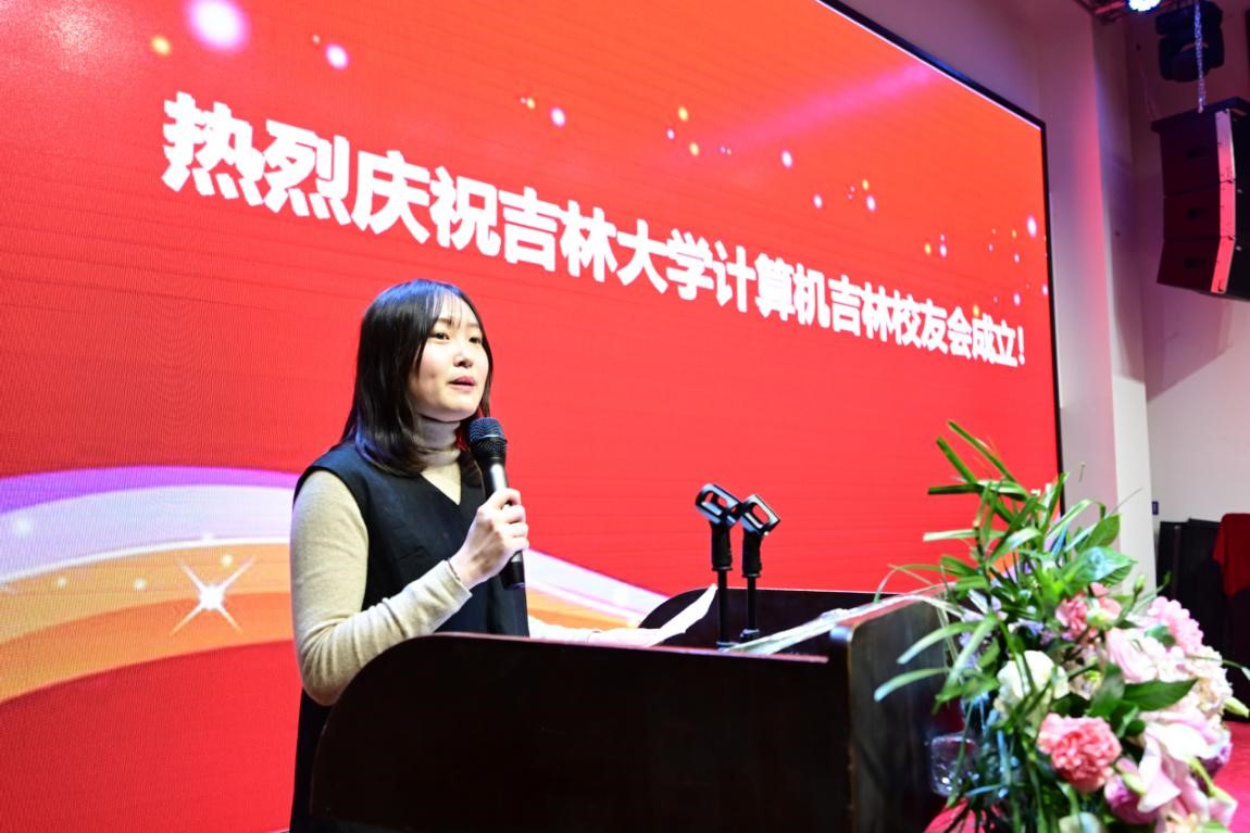 计算机吉林校友会牟琪会长致辞,牟琪会长代表校友会表达了校友会将始终秉持“服务校友,回馈母校,创造价值,贡献社会”的核心理念,持续着力构建以“交流”为核心的校友工作平台,倾力打造以“服务”为基础的校友发展平台,极力促进以“共赢”为目标的校友合作平台,在服务好本地校友的基础上,积极构建学院为世界各地校友提供服务和支撑的平台,积极做好世界各地校友的母校联络处和接待站,同各地校友一起助力母校和学院更上新台阶!