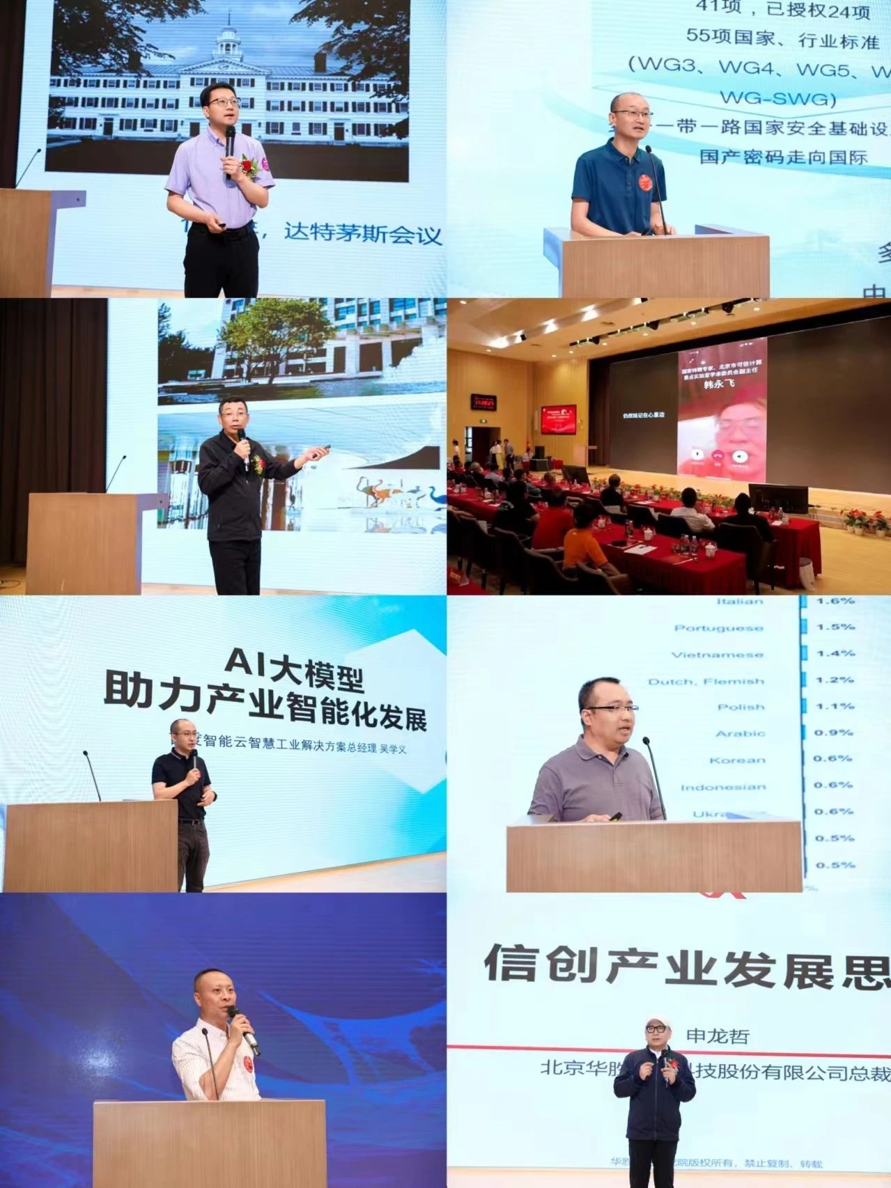 计算机科学与技术学院、软件学院、网络安全学院院长杨博,东方国信联席总裁霍卫平校友,百度智能云解决方案总经理吴学义校友,云集至公司技术总监解决方案部总经理张海涛校友,吉大正元执行总裁田景成校友,国家特聘专家、北京市可信计算重点实验室学术委员会副主任韩永飞校友,清雁科技公司(北京)有限公司技术总监林杨校友,华胜天成总裁申龙哲校友作主题演讲,为大家勾勒出人工智能技术的广阔前景,为科技发展注入新动力。