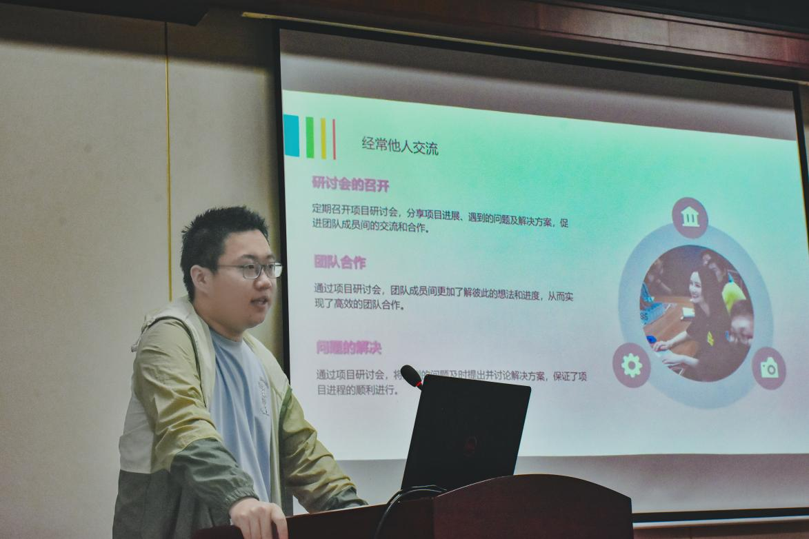 计算机科学与技术学院副教授刘华虓先生及其团队成员徐可彤同学,以“于方德社区绽放开源之花——浅谈方德项目带给我的经验与收获”为主题,分享了参与开源实践项目的意义和项目管理流程,以及通过项目实践所获得的能力提升和收获。刘老师补充道,参与项目不仅补充了本科生的实操经验,促进个人成长,还提升了面试竞争力。