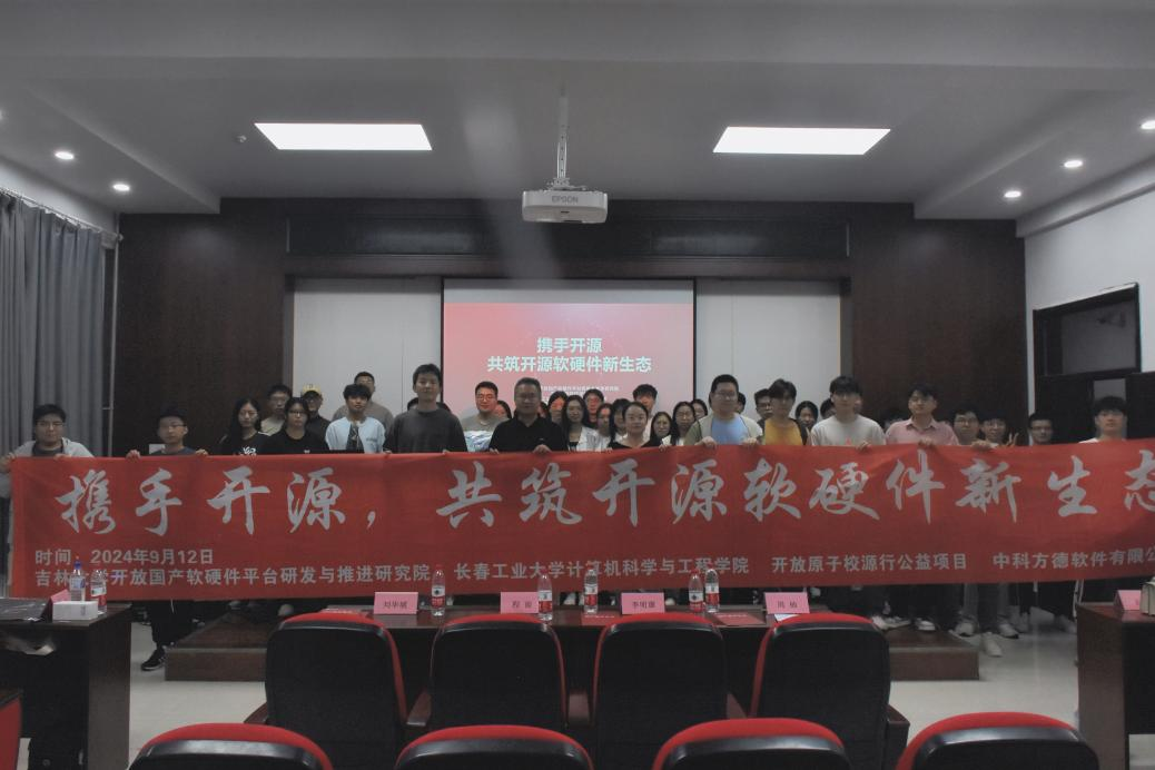 开放国产软硬件平台研发与推进研究院主办了一场主题为“携手开源,共筑开源软硬件新生态”的国产操作系统与开源社区发展分享会,分享会由中科方德软件有限公司、开放原子校源行公益项目、JLU开放原子开源社团协办。分享会分别在东北师范大学信息科学与技术学院和长春工业大学计算机科学与工程学院成功举办,旨在深入探讨国产操作系统和开源文化,分享开源软件移植和项目管理的实战经验,帮助同学们学习如何参与社区项目、提升实践能力,并探索职业发展机会,为未来铺路。