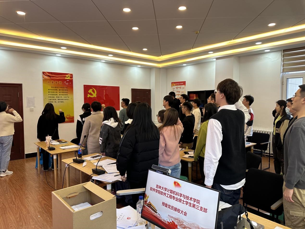 计算机科学与技术学院软件学院软件工程专业硕士学生第三党支部在计算机楼B340党员之家举行韩文强等21名预备党员入党宣誓仪式。