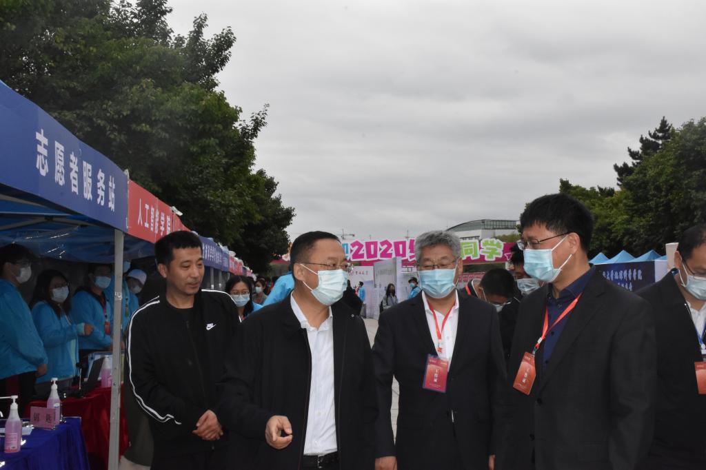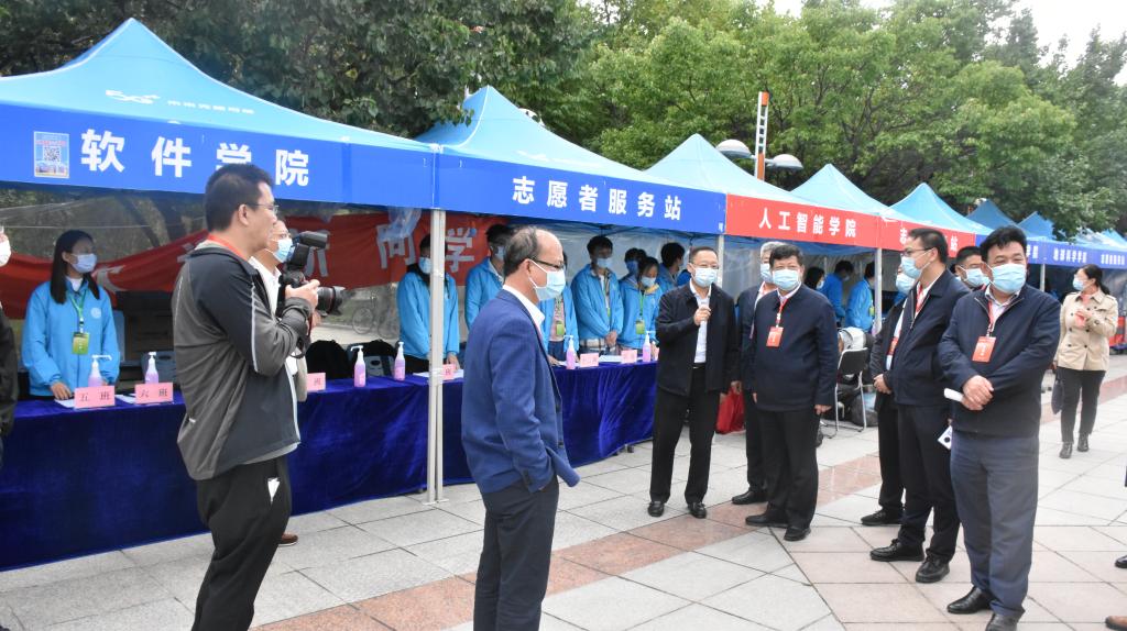 期间,校党委书记姜治莹、校长张希、校党委副书记冯正玉来到五月花广场慰问迎新工作人员并询问报道情况。