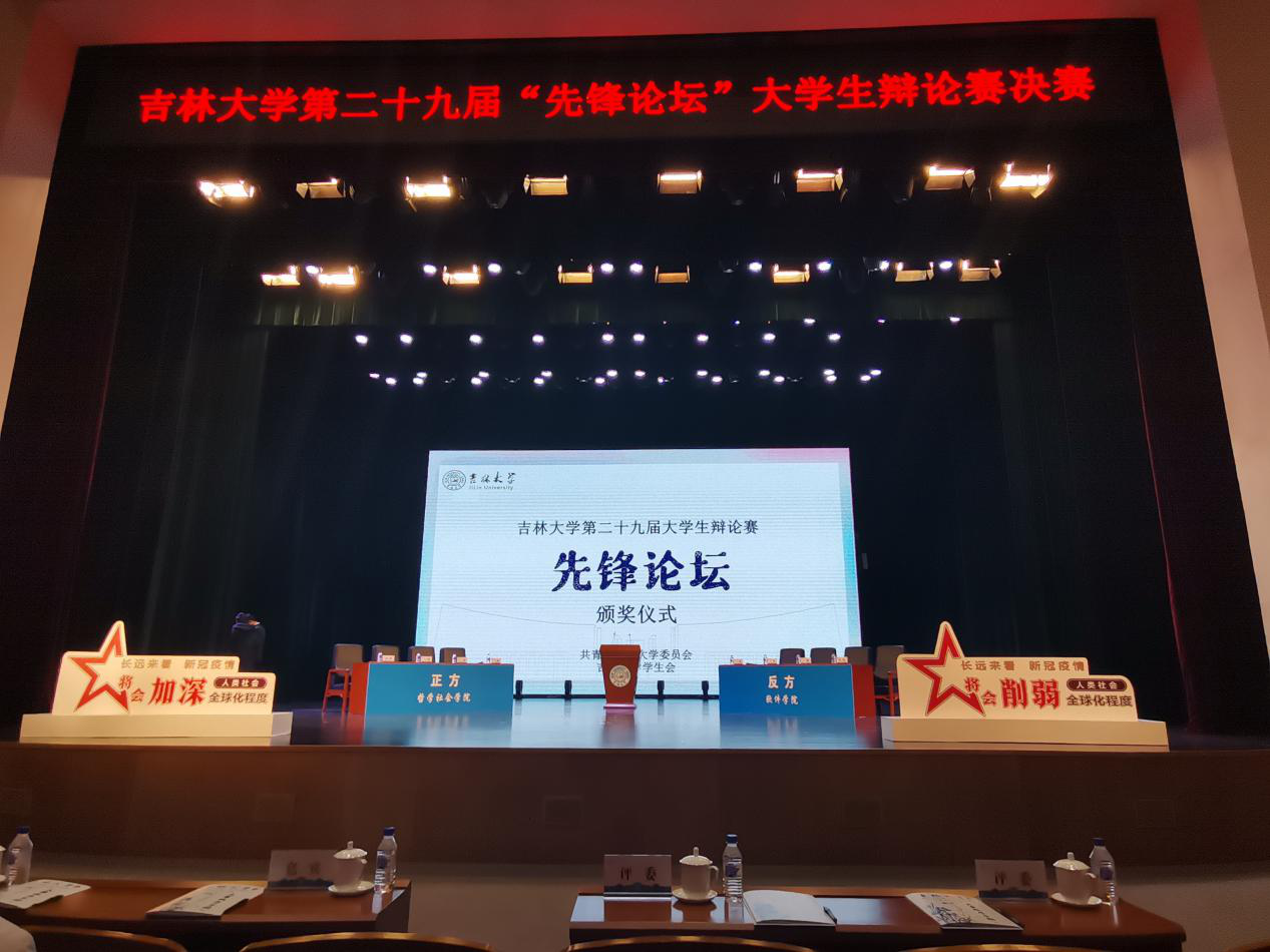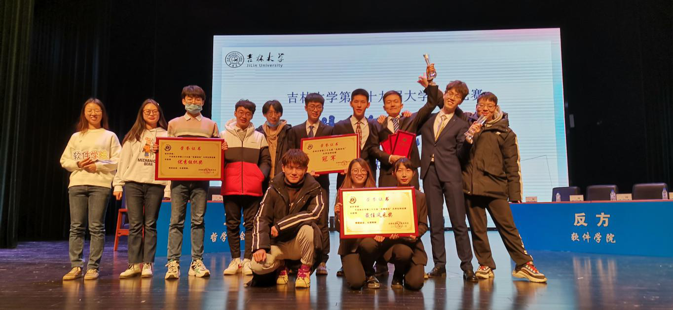 代表软件学院参赛的四名同学是吴涵、朱菲墨、王瀚汶、张座明。备赛阶段,辩论队成员每天对辩题进行剖析和讨论,以全球化的、长远的眼光看待问题并分析,运用了大量的实证分析和逻辑推演方法。29日上午,先锋论坛辩论赛决赛准时开始。软件学院作为反方,与哲学社会学院辩论队就“长远来看,新冠疫情加深还是削弱了全球化程度”这一辩题展开辩论,为大家奉献了一场思辨盛宴。双方辩手在立论质询、对辩盘问、自由辩论、总结陈词四个阶段都展现了自己深厚的知识储备和灵活的临场发挥技能,现场气氛十分活跃。软件学院辩论队队员的陈词时而妙语连珠、诙谐幽默,时而慷慨激昂、掷地有声,将对方的攻势巧妙化解。尤其是在最精彩的自由辩论环节,双方你来我往,在每一处未完结的战场上进行着博弈和较量。最终,软件学院战胜了卫冕冠军哲学社会学院,问鼎本届先锋论坛。软件学院辩论队成功获得本次大赛的冠军奖牌,同时,张座明同学也获得了“最佳辩手”的奖杯。颁奖仪式结束后,辩论队的其他同学纷纷上台拥抱四位主辩手,大家在舞台上合影留念,体现了队员们的团结与友谊。