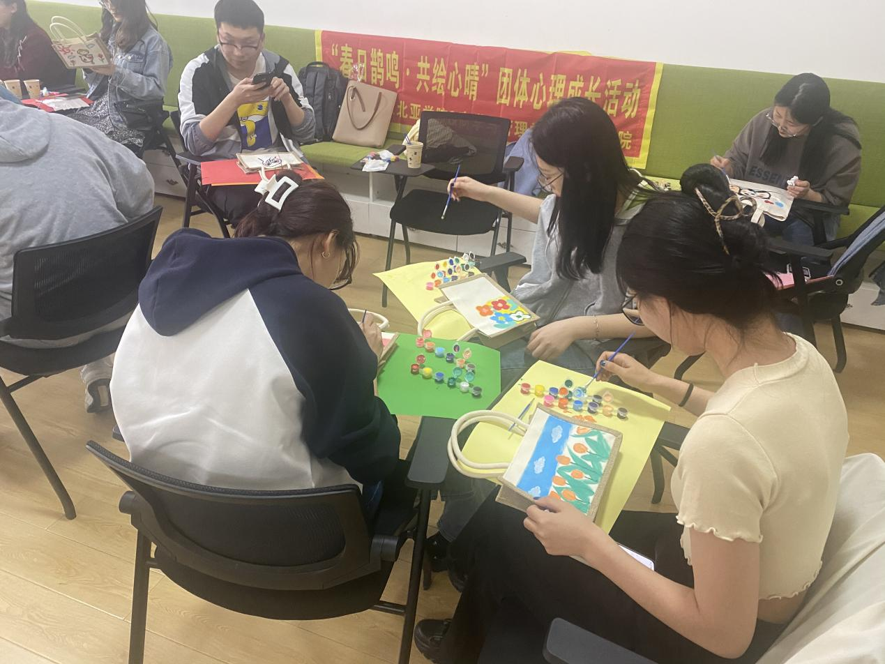为进一步营造校园心理健康良好氛围,引导同学们正确认识自我,提高心理素质,丰富同学们的课余生活,缓解研究生生活压力,软件学院、商学与管理学院和东北亚学院三院研究生朋辈心理辅导员联合开展以“春日鹊鸣·共绘心晴”为主题的帆布包涂鸦活动。