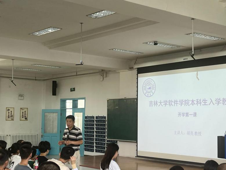 为了帮助新生初步认识信息学科的大致情况,了解学校、学院和专业的培养目标,尽快适应大学学习生活,引导学生坚定理想信念,树立正确的学业态度和专业思想,软件学院于8月28日上午10:00在第三教学楼第九阶梯教室进行了2023级本科新生开学第一课。此次讲座由胡亮教授担任主讲人,学院党委副书记杜天宝主持,软件学院全体2023级本科新生参加本次活动。