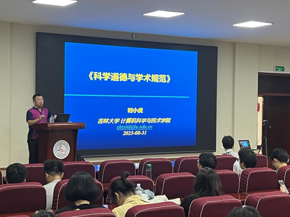 为使2023级全体研究生都能积极投身于科学研究中去,自觉遵守科学研究规律,坚决抵制学术不端行为,9月7日下午1:30,软件学院于王湘浩楼B108开展科学道德与学风教育专题讲座。本次专题讲座由时小虎教授主讲,研究生辅导员张译心主持,全体2023级研究生参加本次活动。