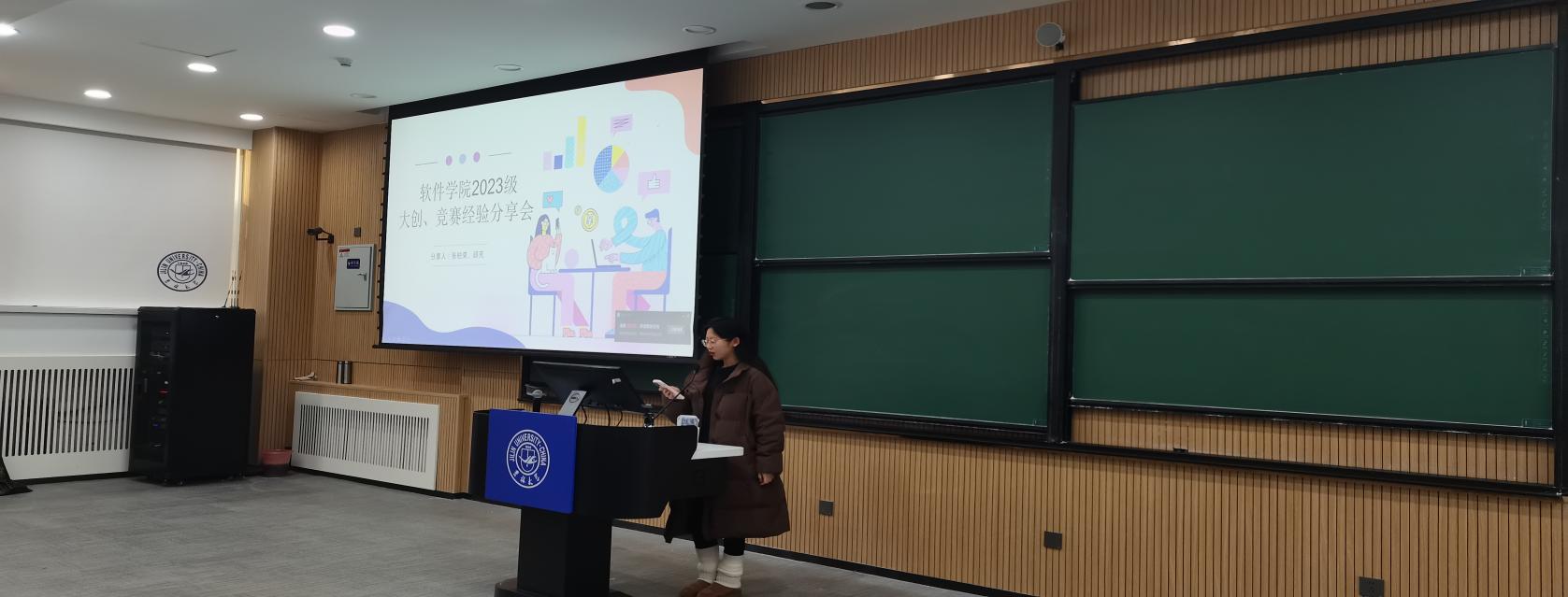 为了鼓励和引导同学们积极参与大创项目及各类学科竞赛活动,提升同学们创新创业、学科竞赛能力,更好地规划在校期间的学习生活,软件学院于3月10日在敬信教学楼第三阶梯教室举办了“悦享学途 朋辈领航”大创与学科竞赛经验分享会。邀请2021级张柏荣同学和2022级邱天同学担任主讲人。