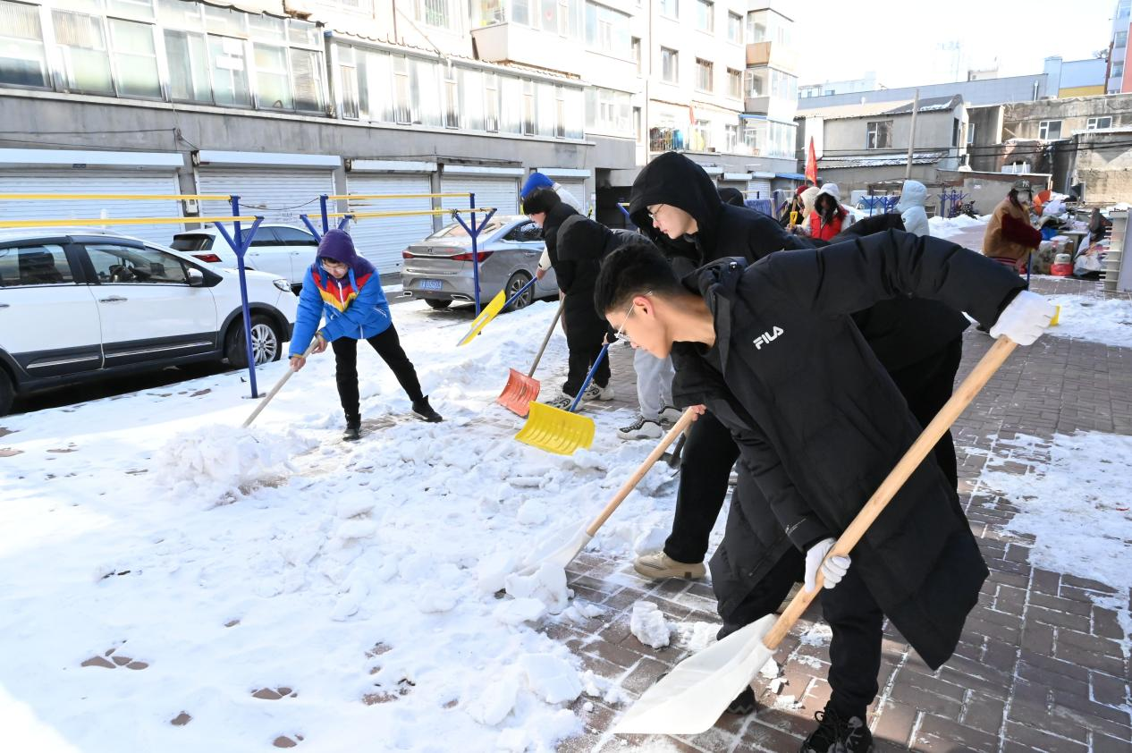活动当天,志愿者们首先对社区内的主干道、人行道进行了细致的调研,向社区工作人员详细了解积雪的情况和居民的需求,随后志愿者们迅速行动起来,分工合作,有条不紊的开始铲雪除冰作业。在了解到社区内老年人较多后,考虑到居民的出行安全,志愿者们着重对社区内健身设施周围、各单元楼门口、停车场、敬老院周边区域的残留冰雪进行清理,确保居民出行的安全与顺畅。尽管积雪较厚,路面难行,但同学们满怀活力,努力做到“扫过即净,不留余冰”,收获了社区居民及工作人员的广泛认可和赞誉,充分展现了chaturbate