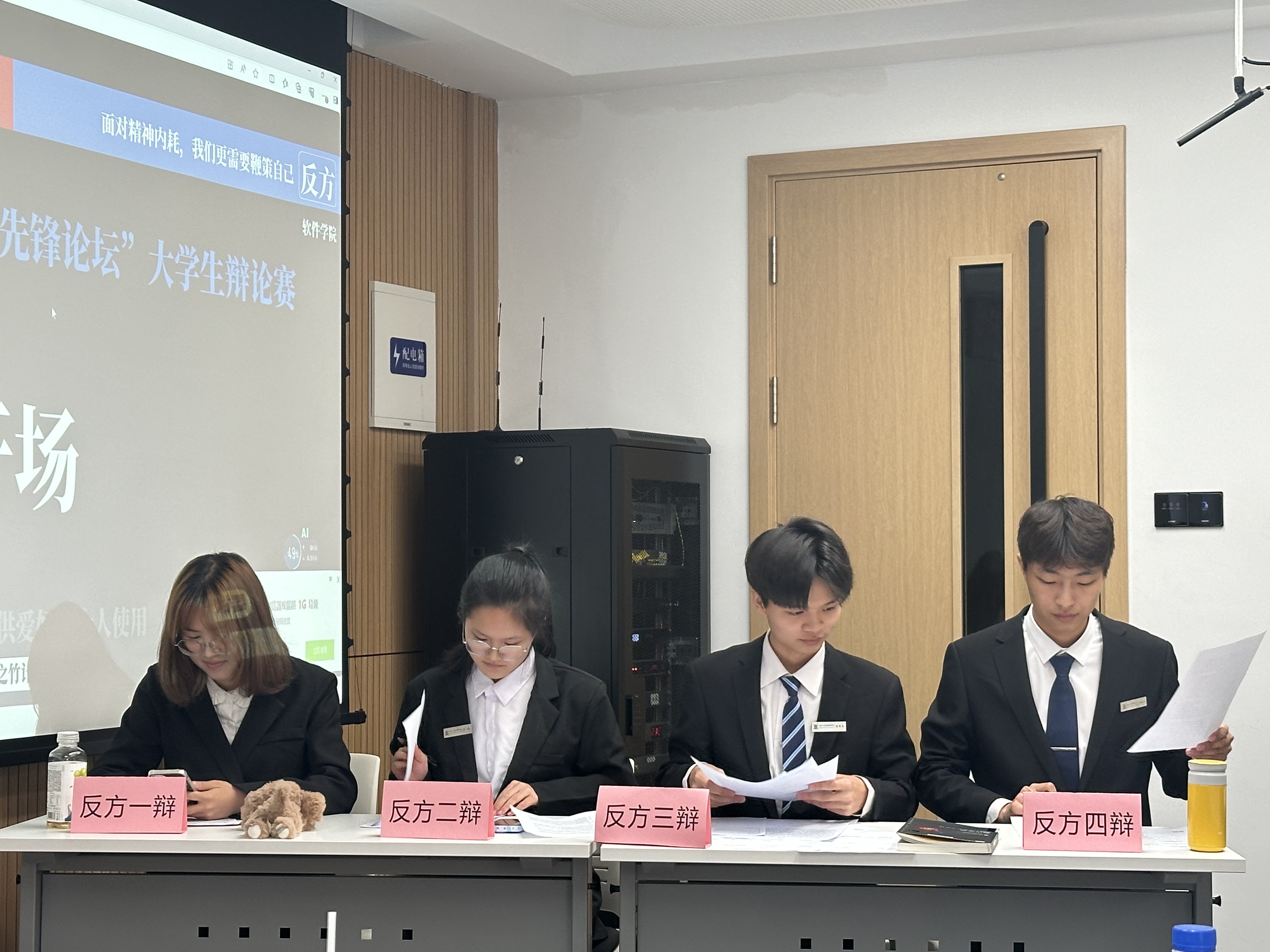 先锋论坛大学生辩论赛拉开帷幕,软件学院辩论队由潘冠宇同学担任领队,孙帅同学担任教练,带领蔡德宇、徐佳慧、张睿曦等十名优秀辩手代表软件学院征战本届先锋论坛。同时,选送白瑀同学作为随队工作人员担任主席。