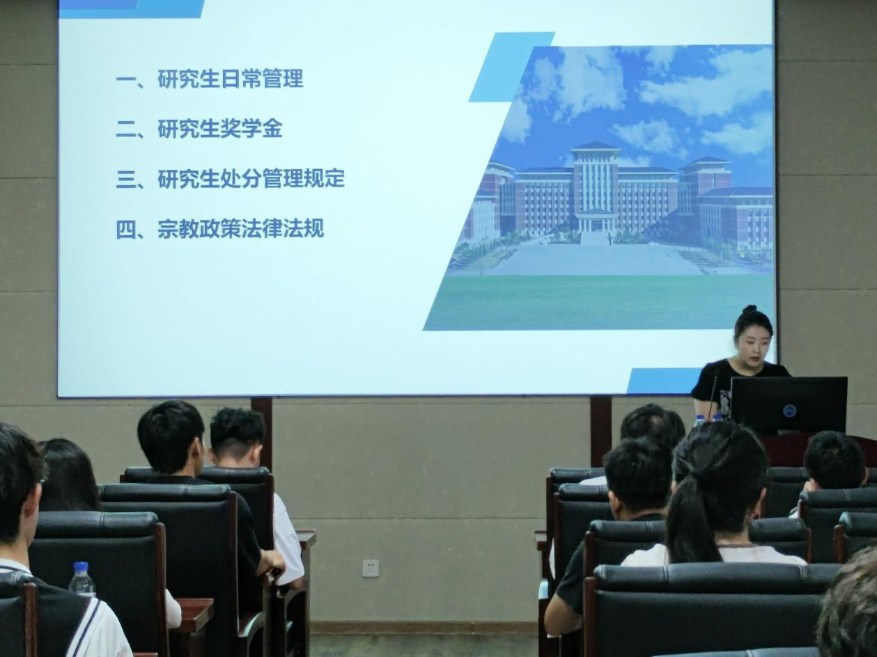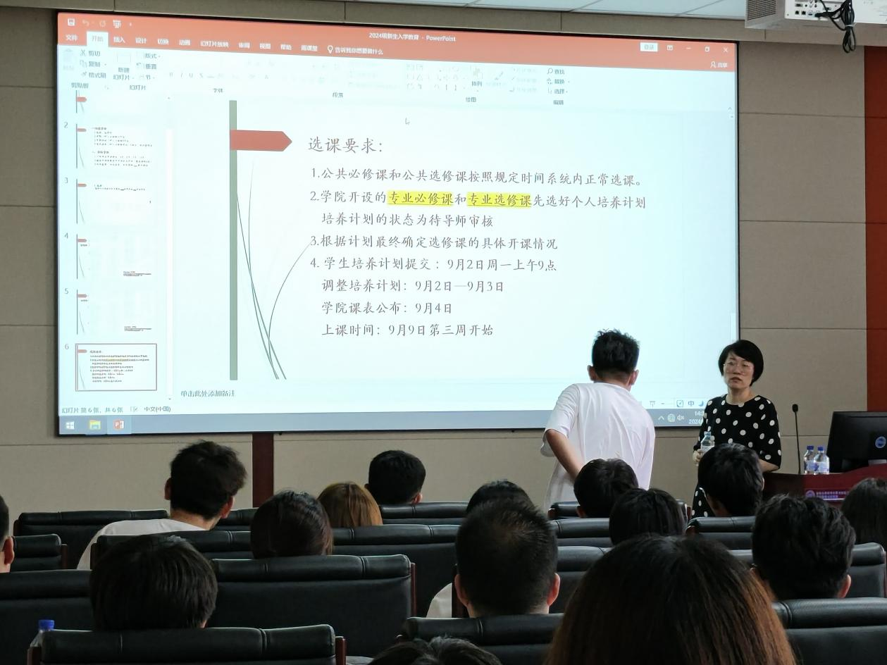 2024级研究生尽快适应研究生生活,尽早做好研究生阶段的学习规划,8月30日上午,学院于2024年8月30日下午1:30举办研究生日常管理条例解读及研究生培养规定介绍讲座。学院全体2024级研究生参会,讲座由研究生秘书张琳老师和研究生辅导员张译心老师讲解。