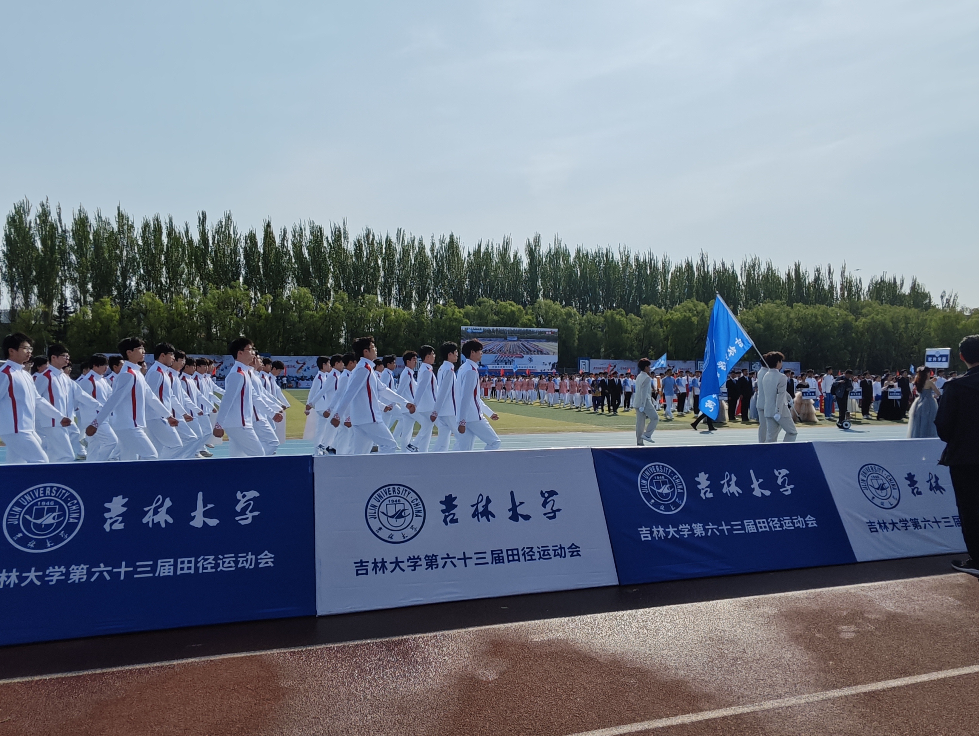 第六十三届田径运动会开幕式上精彩亮相。整齐的队形、铿锵的步伐和嘹亮的口号赢得现场阵阵掌声,充分展现了学院师生的凝聚力与执行力。