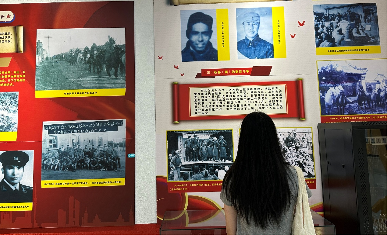松原市博物馆的中国共产党松原历史展同样引人入胜。展览分四个部分,全方位展现党在松原地区的发展脉络。成员们从“星火燎原,岁月峥嵘”展区中体会早期革命的艰难,在“艰难探索,风雨前行”展区里感受不同时期的奋斗艰辛,于“解放思想,改革开放”展区见证发展成就,到“江畔新城,幸福松原”领略如今祖国的繁荣昌盛。成员们在调研中学习思考,汲取奋进力量,传承红色基因。