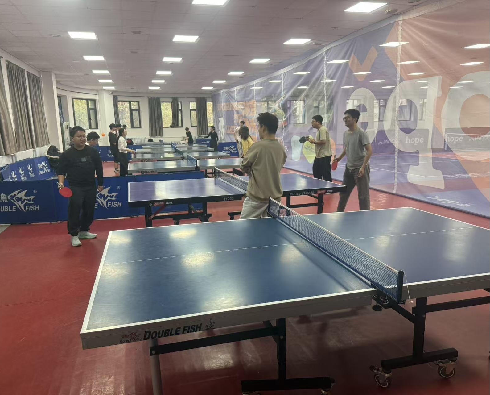 前卫南区老体育馆乒乓球馆内气氛热烈而温馨,由软件学院研究生会主办的“朋辈协力·心理成长”系列活动之“心灵碰撞,‘乒’出心彩”心理探索活动在此顺利开展。本次活动旨在通过乒乓球运动与心理主题相结合的方式,为研究生同学构建一个释放压力、促进人际联结的温暖平台。