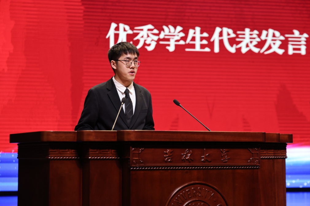 随后,软件学院2022级本科生陈赓作为优秀学生代表发言,他首先向学校、学院及全体老师表达诚挚感恩,并向2025级全体新生送上祝贺。随后,他以自身经历,结合“在技术浪潮中锚定开发者坐标”主题,分享了对专业领域发展的思考与感悟,鼓励同学们保持好奇、脚踏实地、敢于创新,在信息时代中找准方向、持续成长。