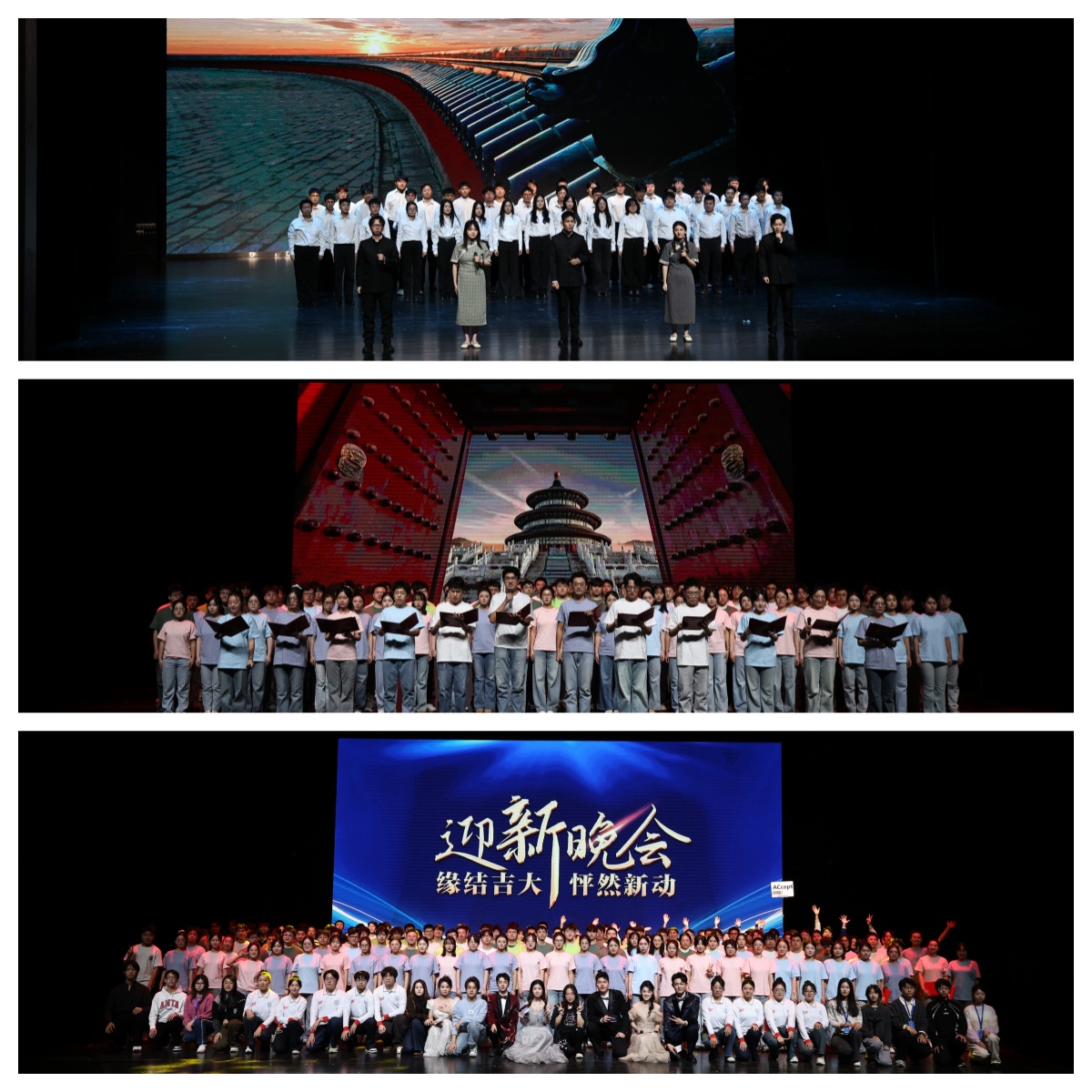 12月5日晚18:30,计算机科学与技术学院、网络安全学院、软件学院“缘结吉大 怦然新动”迎新晚会在鼎新大讲堂顺利举办。学院及中心党政领导班子、教师代表与2025级新生欢聚一堂,共同观看一场洋溢青春、凝聚情谊的文艺盛宴。肖杭岐、肇涛阁、葛振宇、李昕卓、钟嘉莹、李昊南担任晚会主持人。
