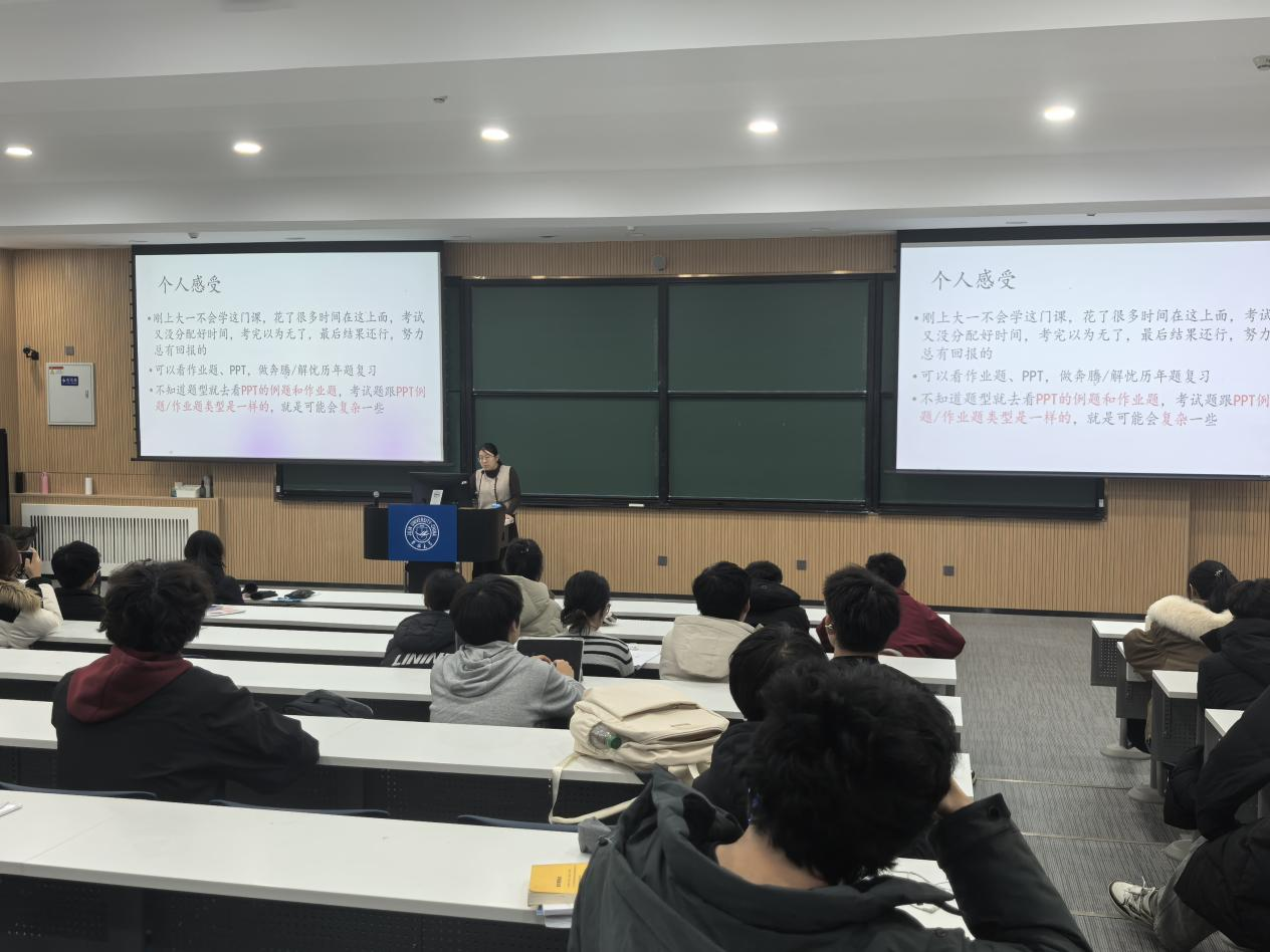 分享会邀请了2024级优秀学生代表苏兆龙、操歌、龙麒旭、任语佳担任主讲人,围绕重点知识梳理、复习策略及备考技巧,为2025级学生传授了丰富的学习经验并且提供了高效的复习技巧指导。