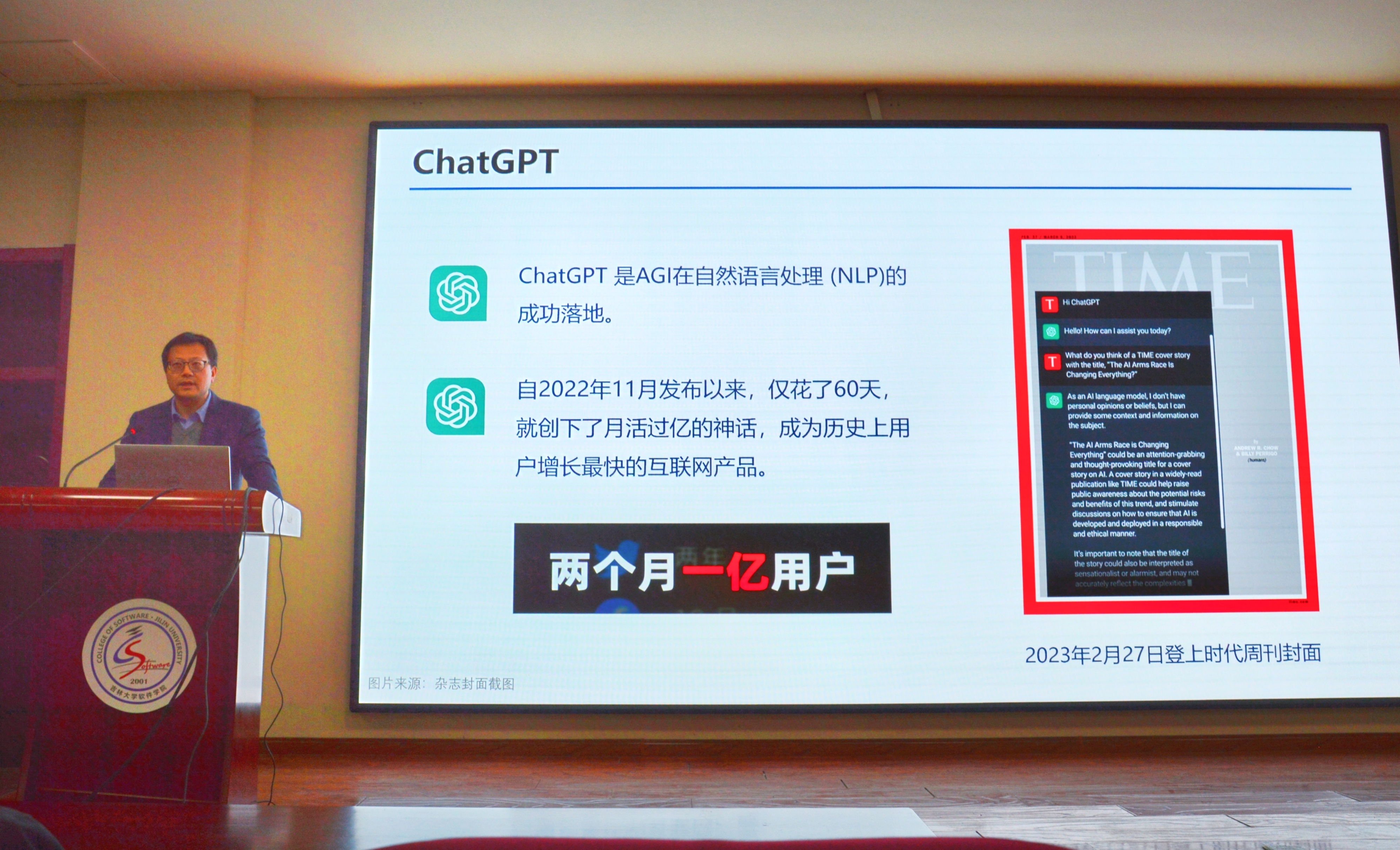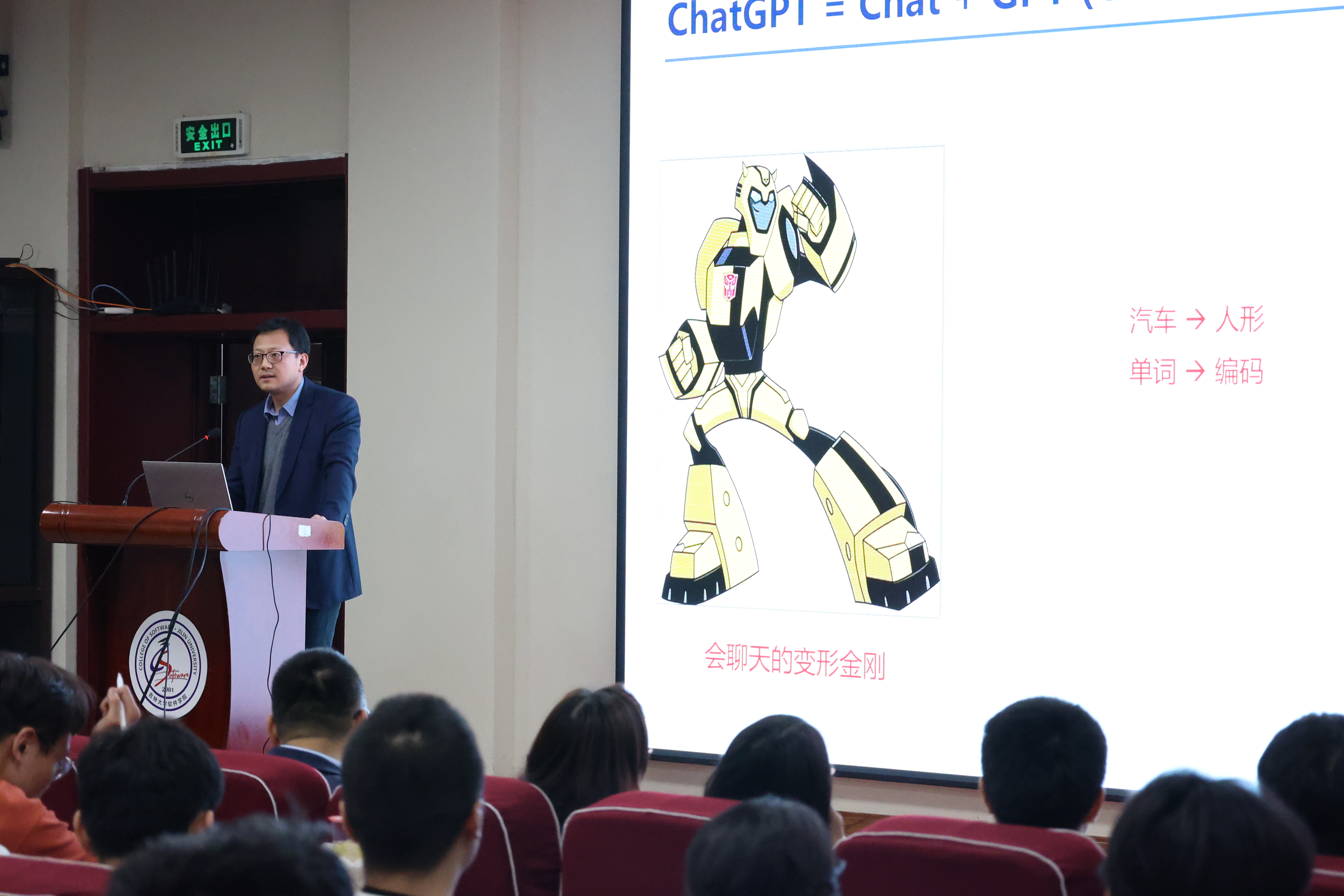 3月24日晚上,计算机科学与技术学院、软件学院院长杨博教授在王湘浩楼一楼大讲堂为两院学生主讲了题为《Chat ChatGPT》的学术讲座。在长达两个小时的讲座中,杨博院长通过针对性的案例结合人工智能在当下社会中的具体实践,将人工智能的演进史和ChatGPT的现状向同学们生动呈现。