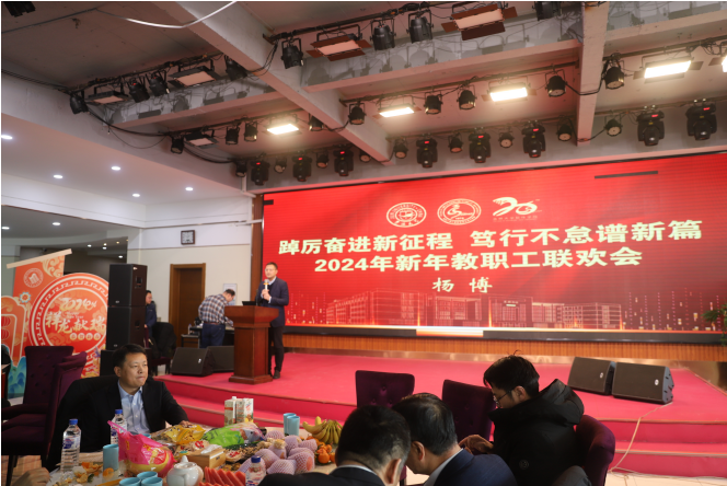 联欢会开始由院长杨博教授致辞,并汇报了2023年学院工作情况。杨博院长首先回顾了学院近几年来在学科建设、人才培养、科学研究、师资培养、学术交流、国际合作各方面发展取得的辉煌成绩,并对学院全体师生的努力表示了衷心感谢;同时,对学院这一年在教学、科研、师资队伍发展等方面取得的进步表示衷心祝贺。千秋伟业,百年只是序章;万里征程,惟有创造、担当,最后杨博院长诚挚的祝愿学院全体教职员工新春快乐,身体健康,工作顺利,生活美满,万事如意。