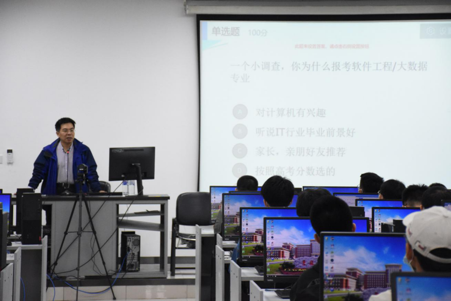 为帮助2020级新生全面了解软件学院,尽快适应大学生活,增强独立意识与能力,9月20日,学院特邀请副院长郭东伟老师在计算机楼为新生做专业教育讲座。讲座由2020级辅导员谭欣老师主持。