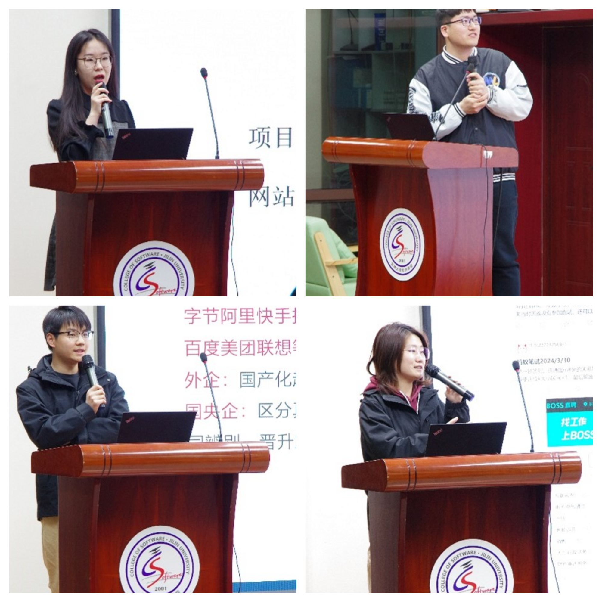活动第一环节“干货论坛”由软件学院研会综合事务部尹馨慧同学主持,第一位分享嘉宾是现入职美团的杜铭同学,主要分享内容为准备互联网大厂的就业整体规划、专业技术学习等内容;入职华为单家旺同学就笔试算法与项目经历准备、综合面试技巧等内容进行了分享;盛建华同学主要分享内容为开发测试的就业经验、实习体验与未来发展等内容;最后一位带来分享的是入职蔚来的徐小惠同学,主要分享了算法岗岗位介绍、日常工作以及如何把握算法岗机会等内容。