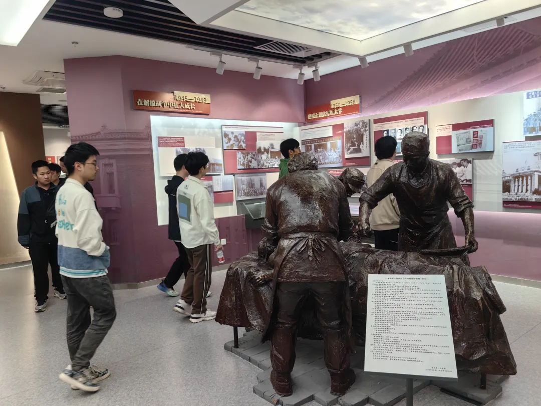 从艰苦创业到不断壮大的发展历程。吕振羽、匡亚明、李四光、唐敖庆、王湘浩、朱光亚……这些令人高山仰止的“大先生”们,在北国春城撒下了科学人文的种子,用自己的智慧和汗水谱写了一曲曲可歌可泣的奋斗者之歌。在展板前,同学们驻足阅读着记录校史的文字、观看历史照片,被那些为学校创建和发展做出巨大贡献的拓业先贤和硕学鸿儒所深深吸引,仿佛置身于历史的漫漫长河中,从他们身上汲取着前进的力量。