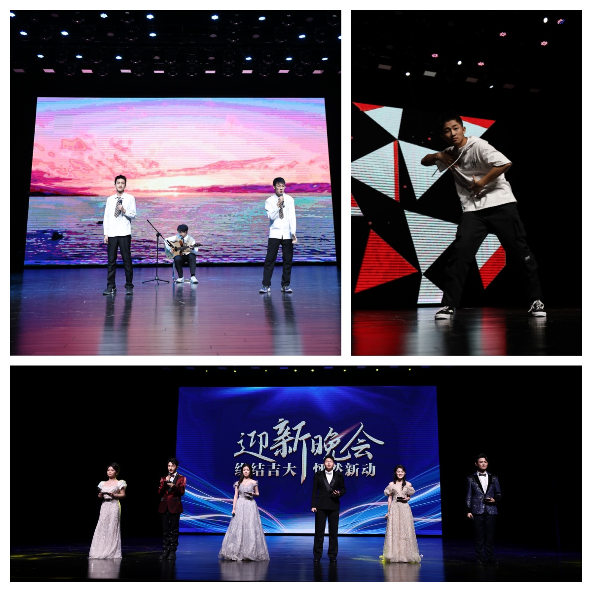 12月5日晚18:30,计算机科学与技术学院、网络安全学院、软件学院“缘结吉大 怦然新动”迎新晚会在鼎新大讲堂顺利举办。学院及中心党政领导班子、教师代表与2025级新生欢聚一堂,共同观看一场洋溢青春、凝聚情谊的文艺盛宴。肖杭岐、肇涛阁、葛振宇、李昕卓、钟嘉莹、李昊南担任晚会主持人。
